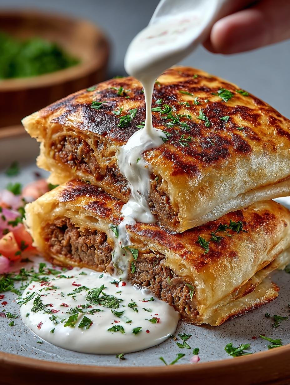 Crispy, juicy beef-stuffed pitas that deliver bold Middle Eastern flavors.